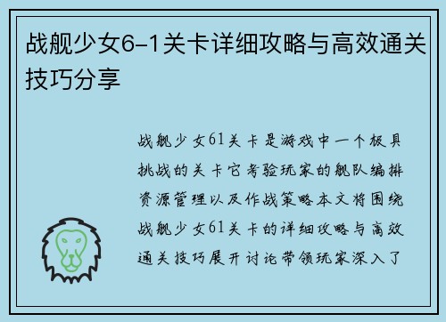 战舰少女6-1关卡详细攻略与高效通关技巧分享